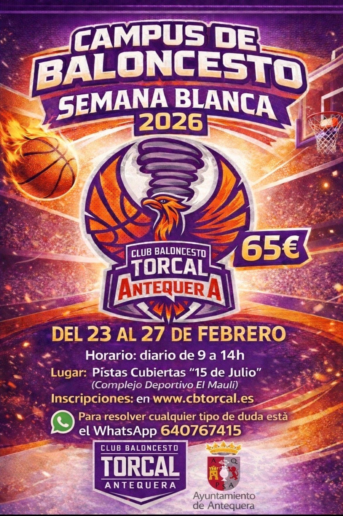 Campues que se desarrollará en horario de 09:00 a 14:00 en las Pistas Cubiertas del PAbellón "15 de Julio", en el Complejo Deportivo El Maulí. Las inscripciones se pueden formalizar en www.cbtorcal.es Para resolver cualquier tipo de duda, se puede contactar a través de WhatsApp en el 640767415. Precio 65€.