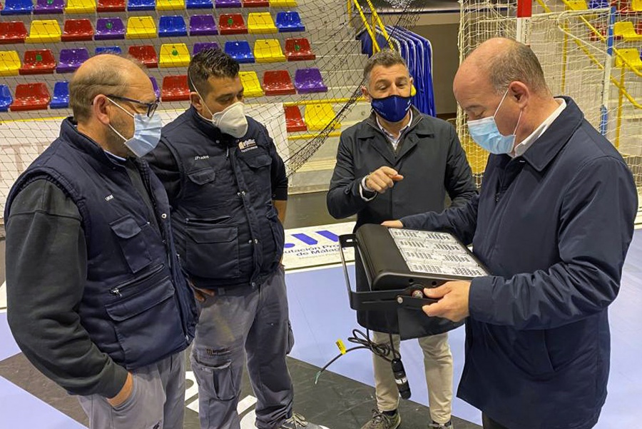 El alcalde de Antequera, Manolo Barón, y el teniente de alcalde delegado de Deportes, Juan Rosas, han visitado en el mediodía de hoy el Pabellón Polideportivo Municipal Fernando Argüelles con motivo del inicio de los trabajos de sustitución y mejora de la iluminación integral de dicho recinto. Esta actuación contempla la sustitución de los hasta ahora existentes focos halógenos por otros nuevos de tecnología LED más eficiente y respetuosa con el medio ambiente, tanto en los pasillos comunes como en las gradas y la pista en sí.