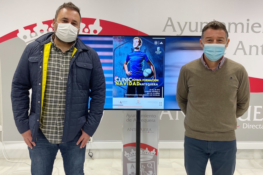 El teniente de alcalde delegado de Deportes, Juan Rosas, y el técnico responsable de la Escuela Municipal de Fútbol, Jesús Marín, han presentado una nueva iniciativa formativa y de ocio a desarrollar durante la primera parte de las vacaciones de Navidad por parte de niños y niñas con edades comprendidas entre los 6 y los 14 años. Se trata del primer Clinic Formativo de Fútbol en Navidad, iniciativa a desarrollar entre el 27 y el 30 de diciembre en horario matinal de 9 a 14 horas.